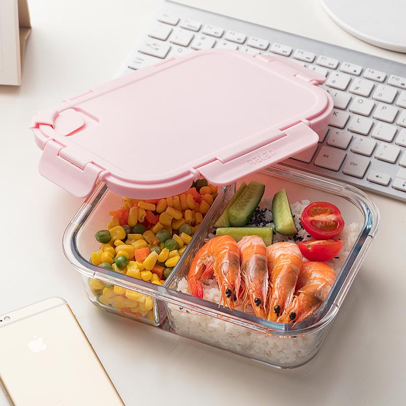 物生物女分隔密封上班族带饭保鲜碗便当餐盒微波炉专用玻璃饭盒