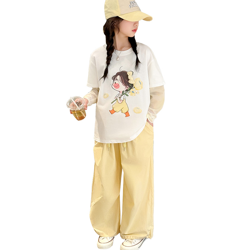 女童短袖t恤2025新款夏季韩版洋气儿童假两件防晒袖拼接上衣薄款
