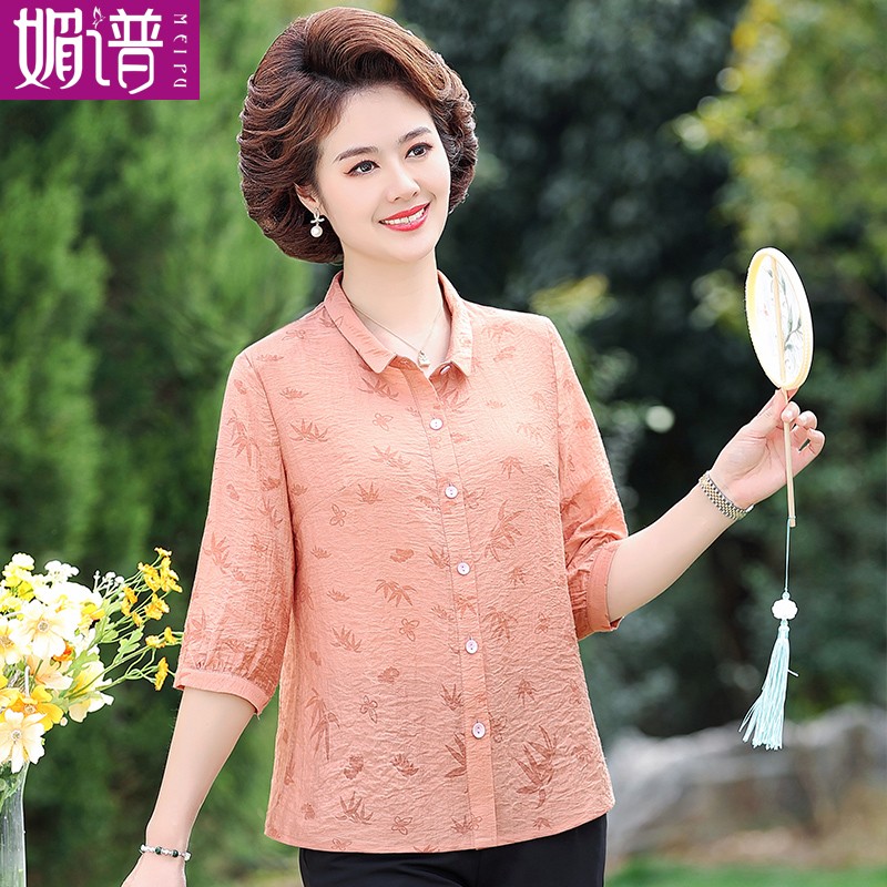 洋气妈妈夏装小个子衬衫2025新款套装中老年女短袖衬衣中年上衣女