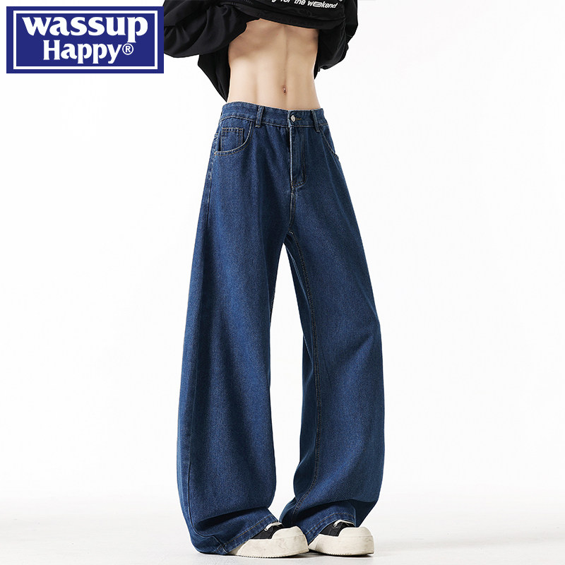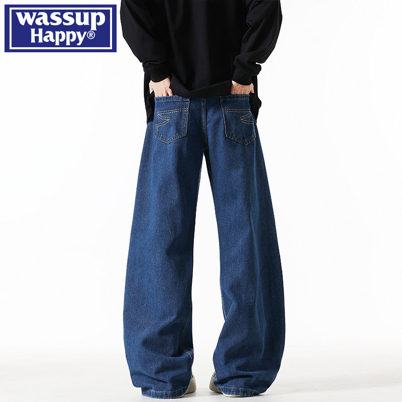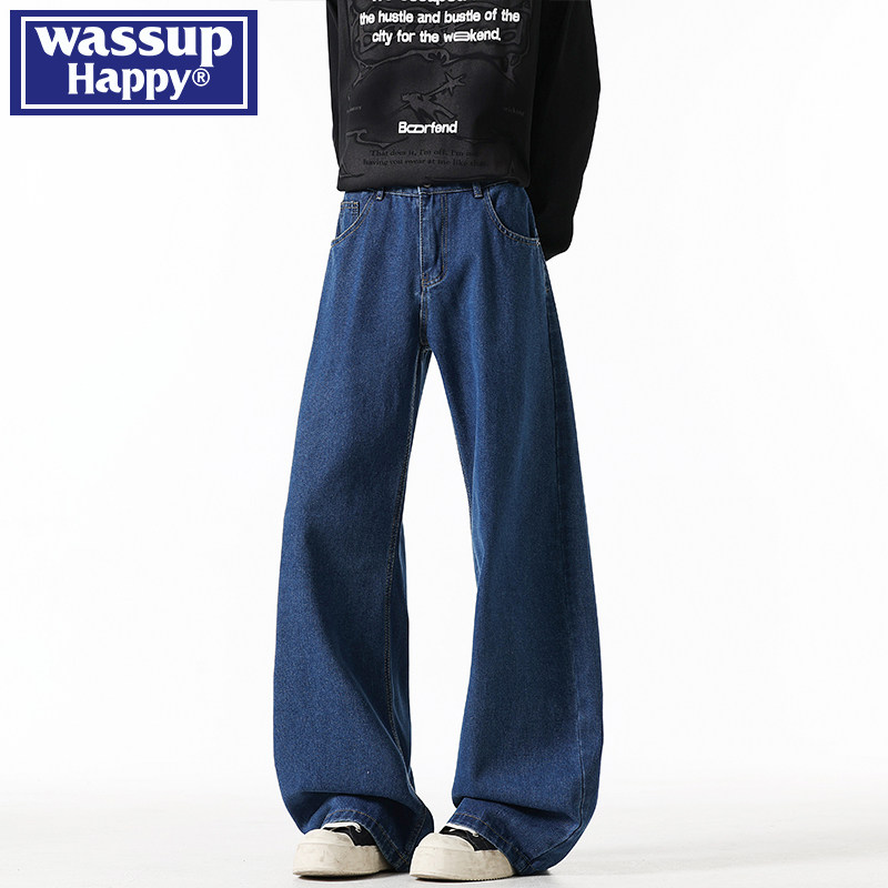 wassup happy微喇牛仔裤子男款秋冬季潮牌青少年宽松直筒休闲长裤
