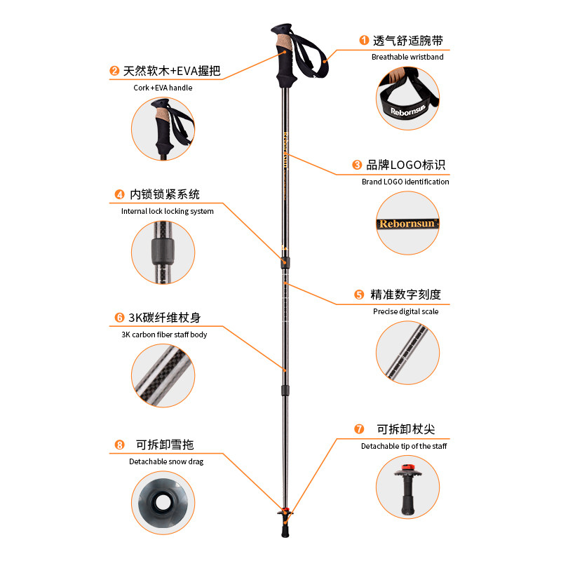 鲁滨逊登山杖户外伸缩手杖碳纤维材质送朋友户外装备礼品手杖王爵