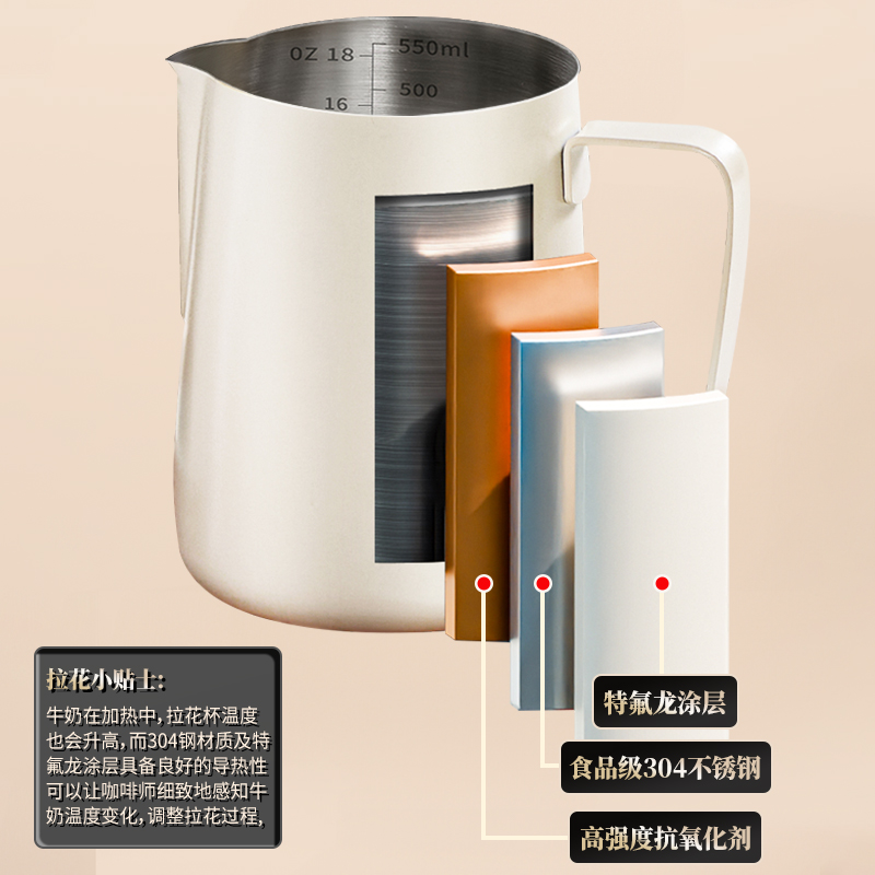 宝选拉花杯拉花缸咖啡奶泡杯专用不锈钢咖啡拉花神器奶缸打奶泡杯