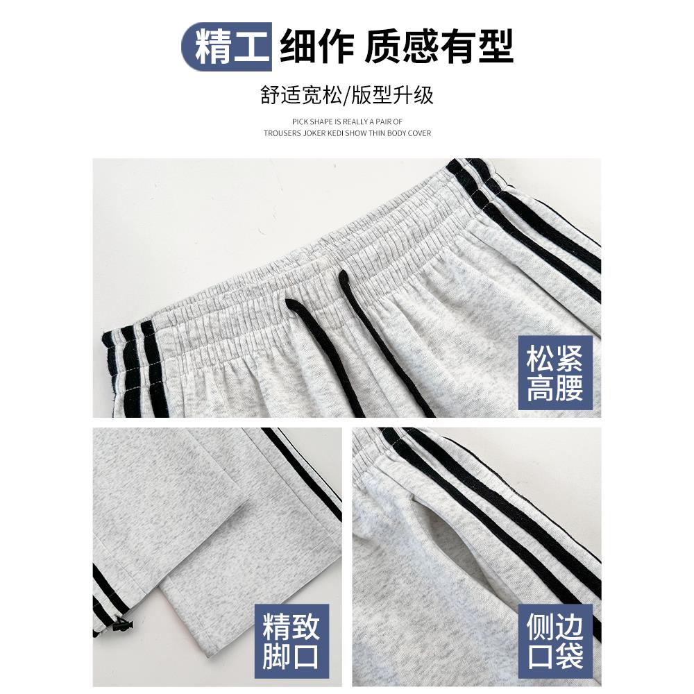 白灰色运动裤女秋季小个子直筒阔腿裤条纹宽松bf慵懒风束脚卫裤子
