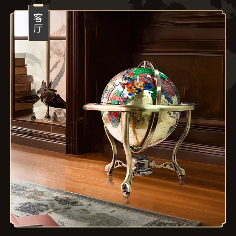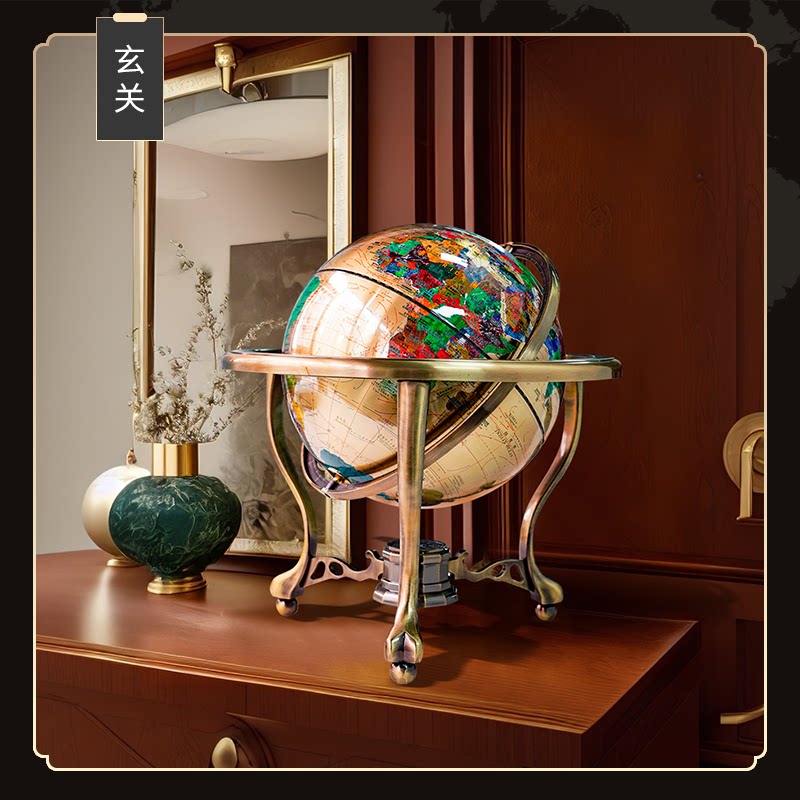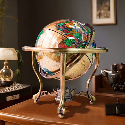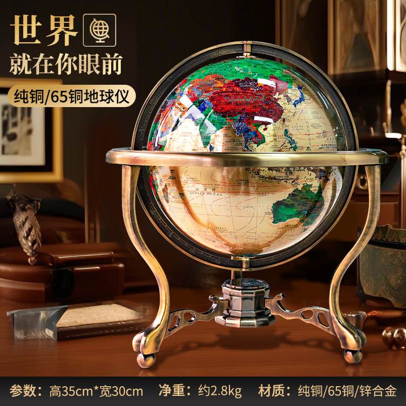 欧式纯铜地球仪中英文对照台式工艺品摆件