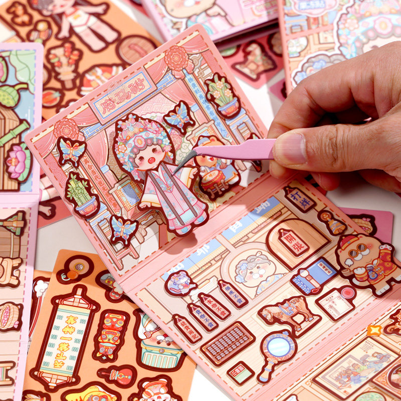 duga多加小麻薯江南游记迷你果冻贴安静书新款女孩手工制作创意diy材料免裁剪儿童学生玩具粘贴纸本安静书