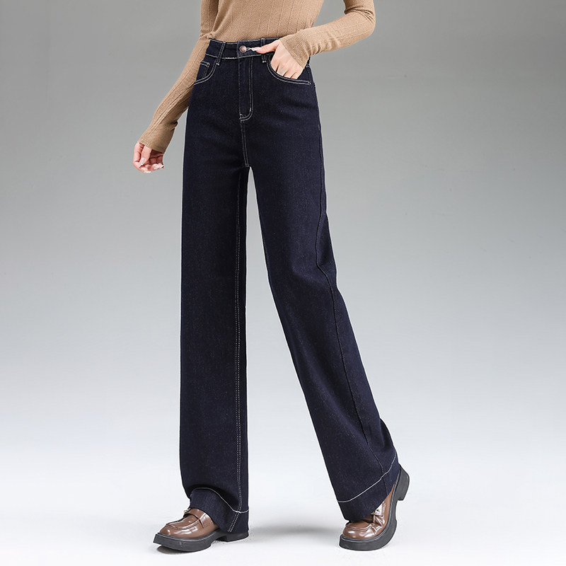 175高个子牛仔裤女春秋丹宁色加长高腰大码显瘦直筒裤加肥加大码