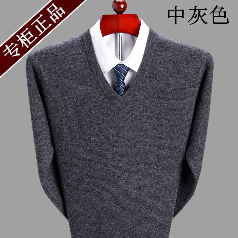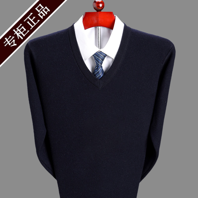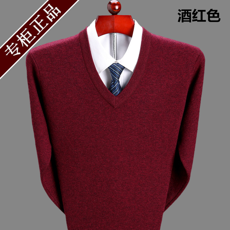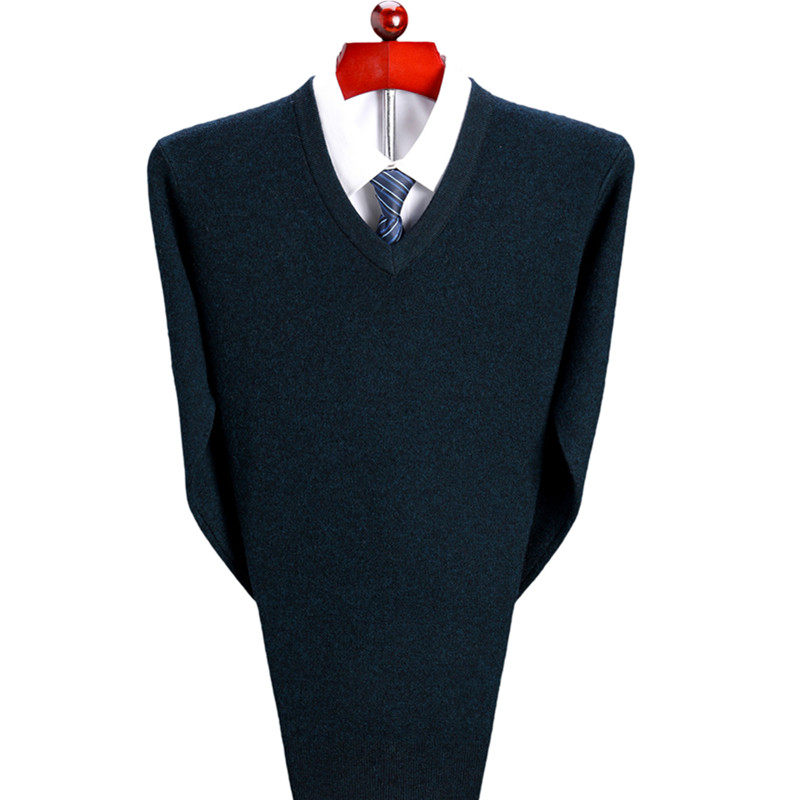 鄂尔多斯市V领羊毛衫男加厚中老年鸡心领羊绒衫商务男款桃领毛衣