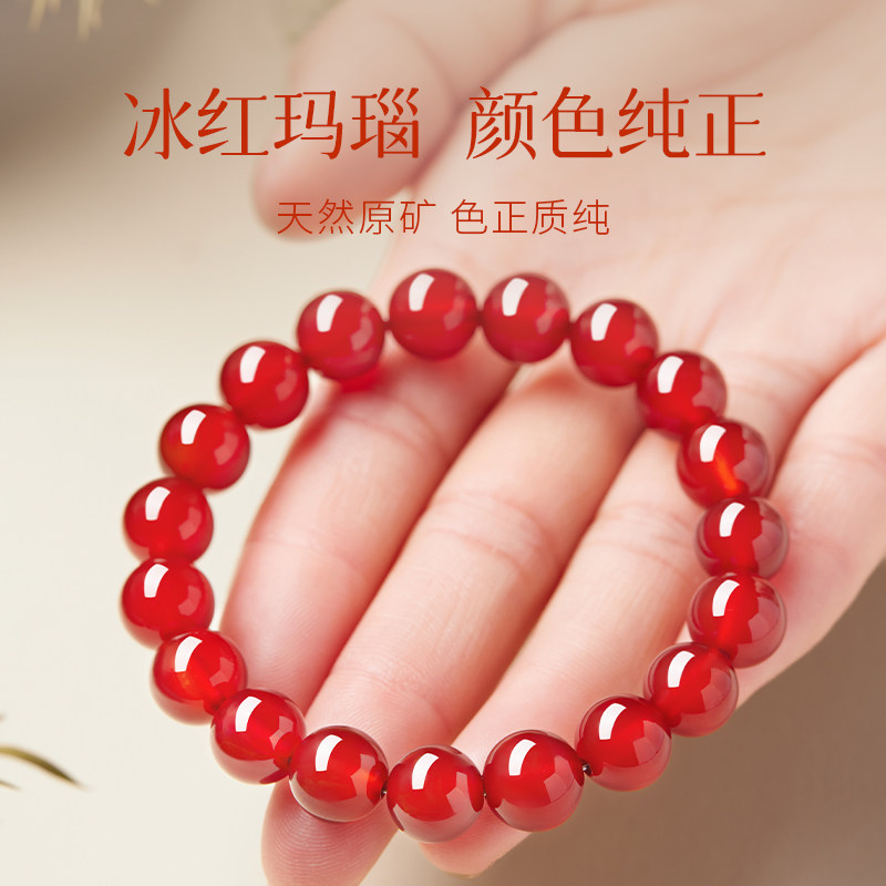 庆祥泰纯天然红玛瑙手串女款官方旗舰店本命年马年手链真品南红男