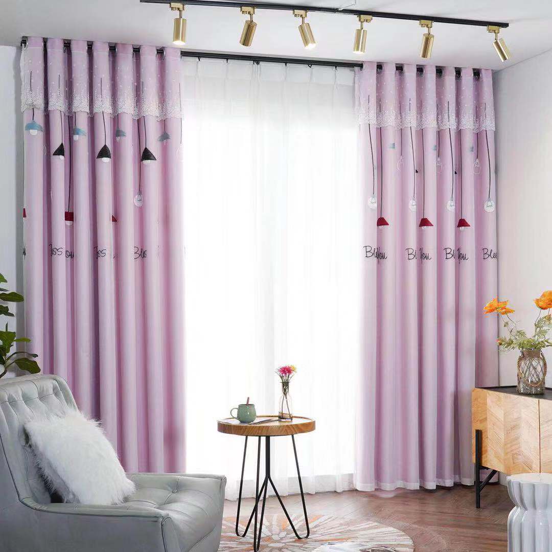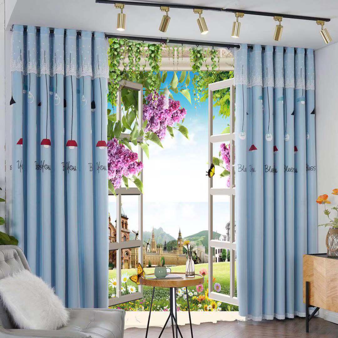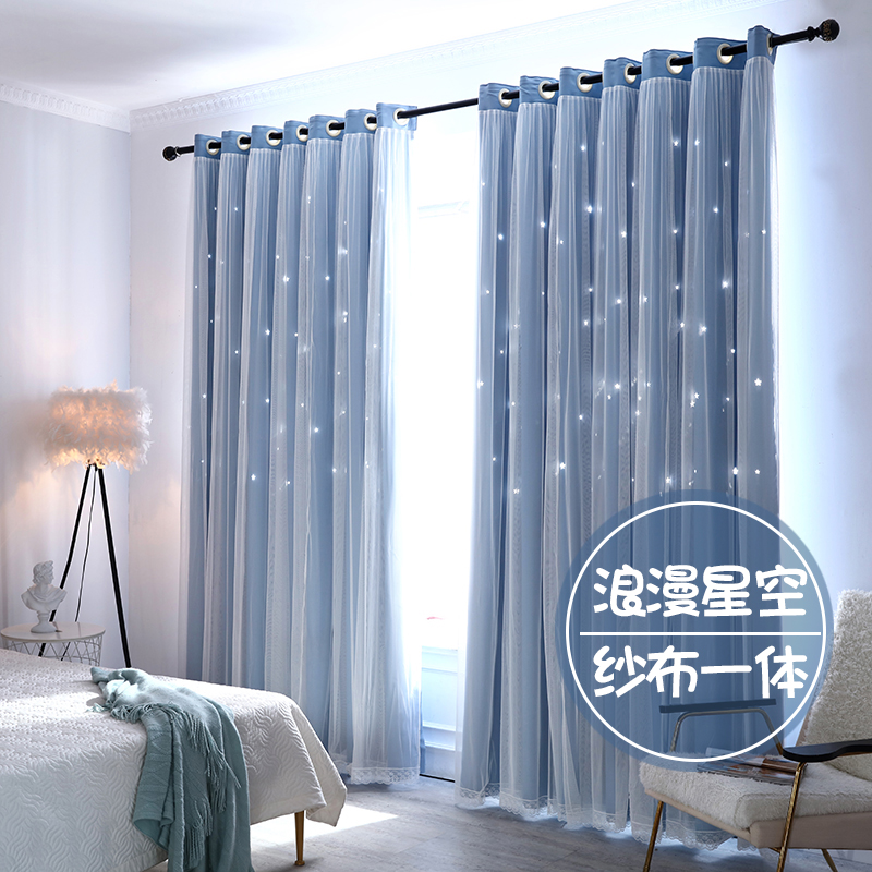 北欧星空镂空蕾丝窗纱公主风婚房加厚全遮光定制窗帘双层布纱一体