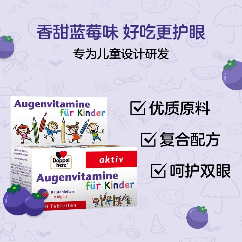 【自营】德国双心儿童护眼专用正品官方旗舰店蓝莓叶黄素咀嚼片*3
