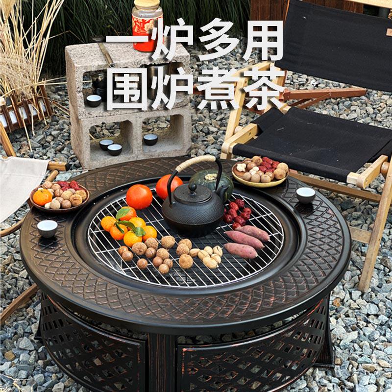 户外工匠烧烤桌庭院家用大号炭火围炉煮茶木炭篝火炉别墅露台火炉
