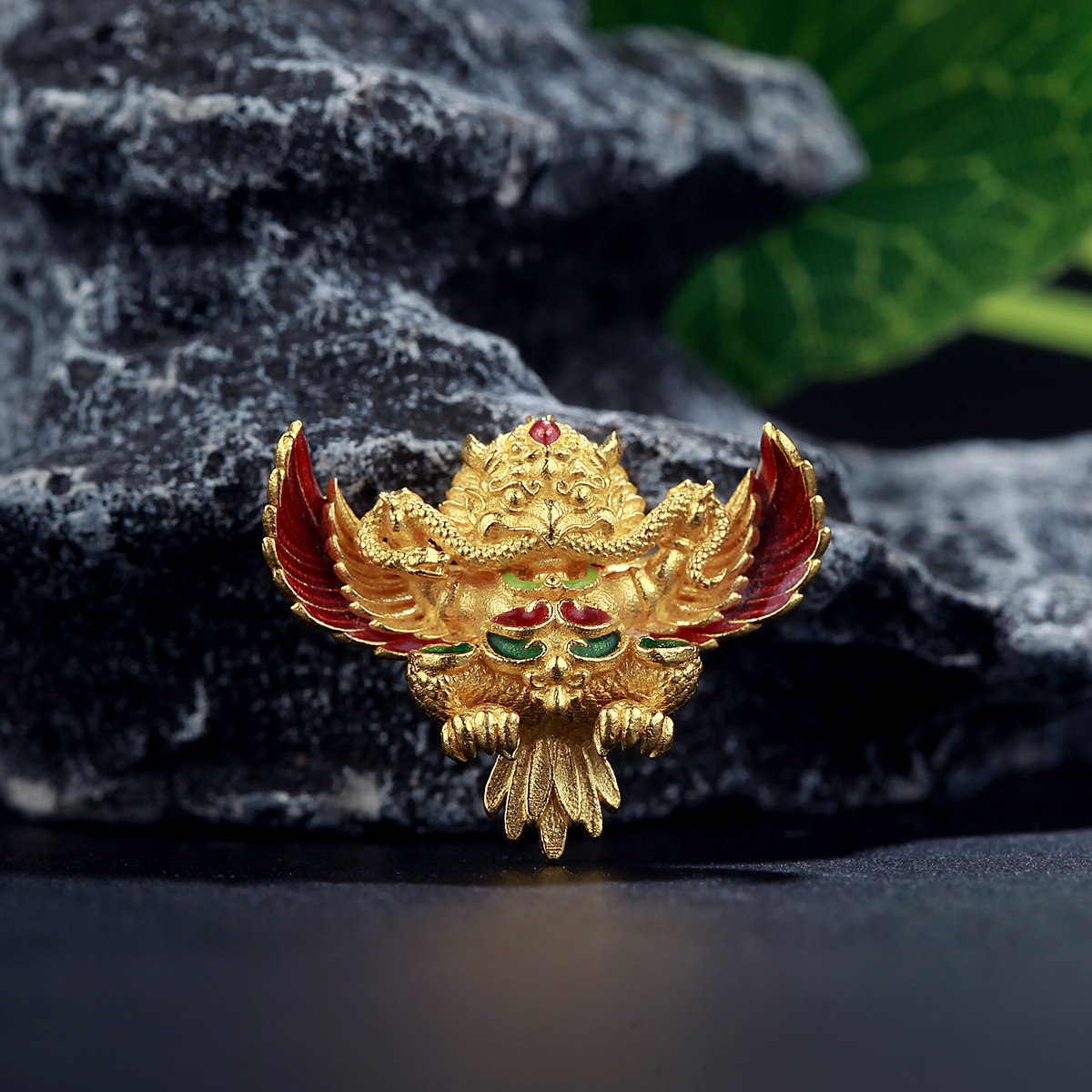 吉盟珠宝古法黄金吊坠男女同款高温烧蓝足金挂坠文玩大鹏金翅鸟