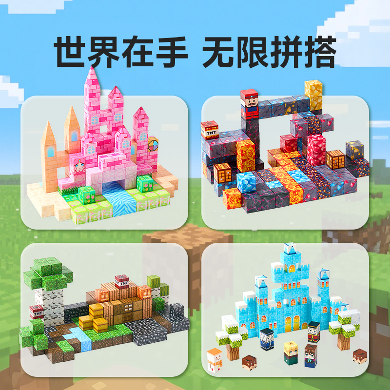 乐乐鱼我的世界磁力方块正版城堡女男孩儿童益智拼装磁吸积木玩具