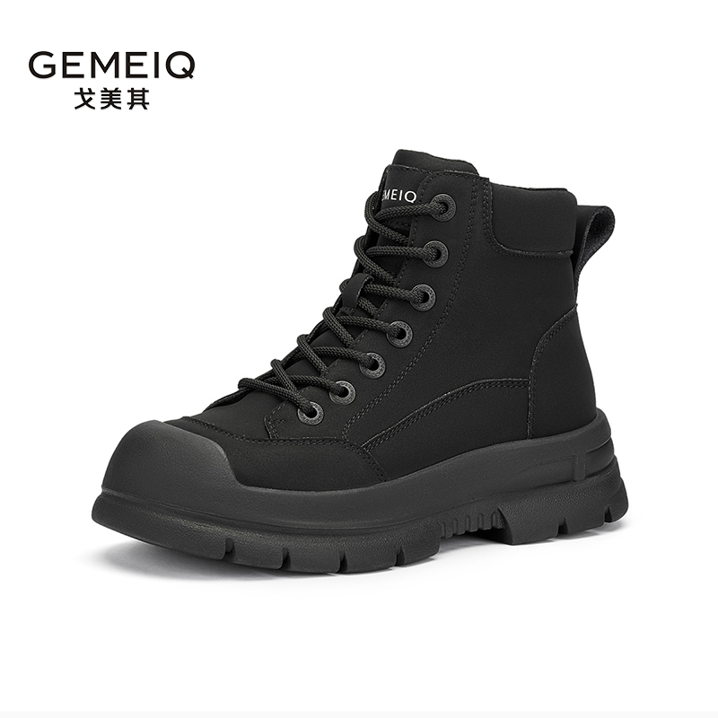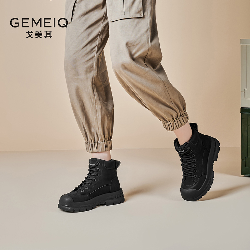 戈美其复古马丁靴女2024冬季新款系带松糕厚底女靴炸街工装短靴