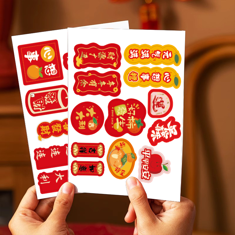 节日祝福喜庆标签贴暴富发财水果干果盒通用包装不干胶黏贴纸定制
