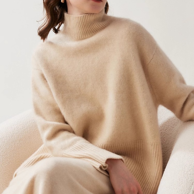 诠释女王气质~三股加厚baby小山羊绒衫女高领针织衫宽松慵懒毛衣