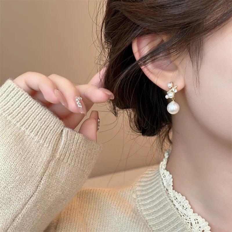 S925纯银珍珠耳环气质温柔精致小众设计感锆石珍珠耳钉新款高级感