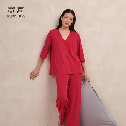 宽画设计师宽松百搭休闲舒适桑蚕丝包边显瘦家居套装女睡衣两件套