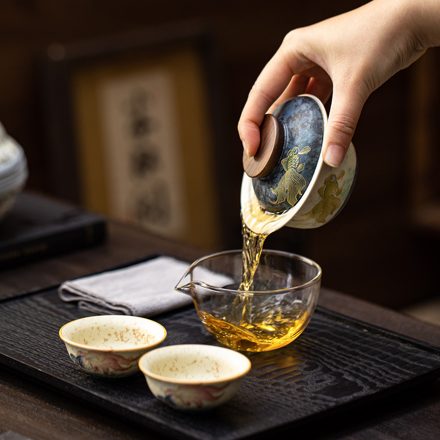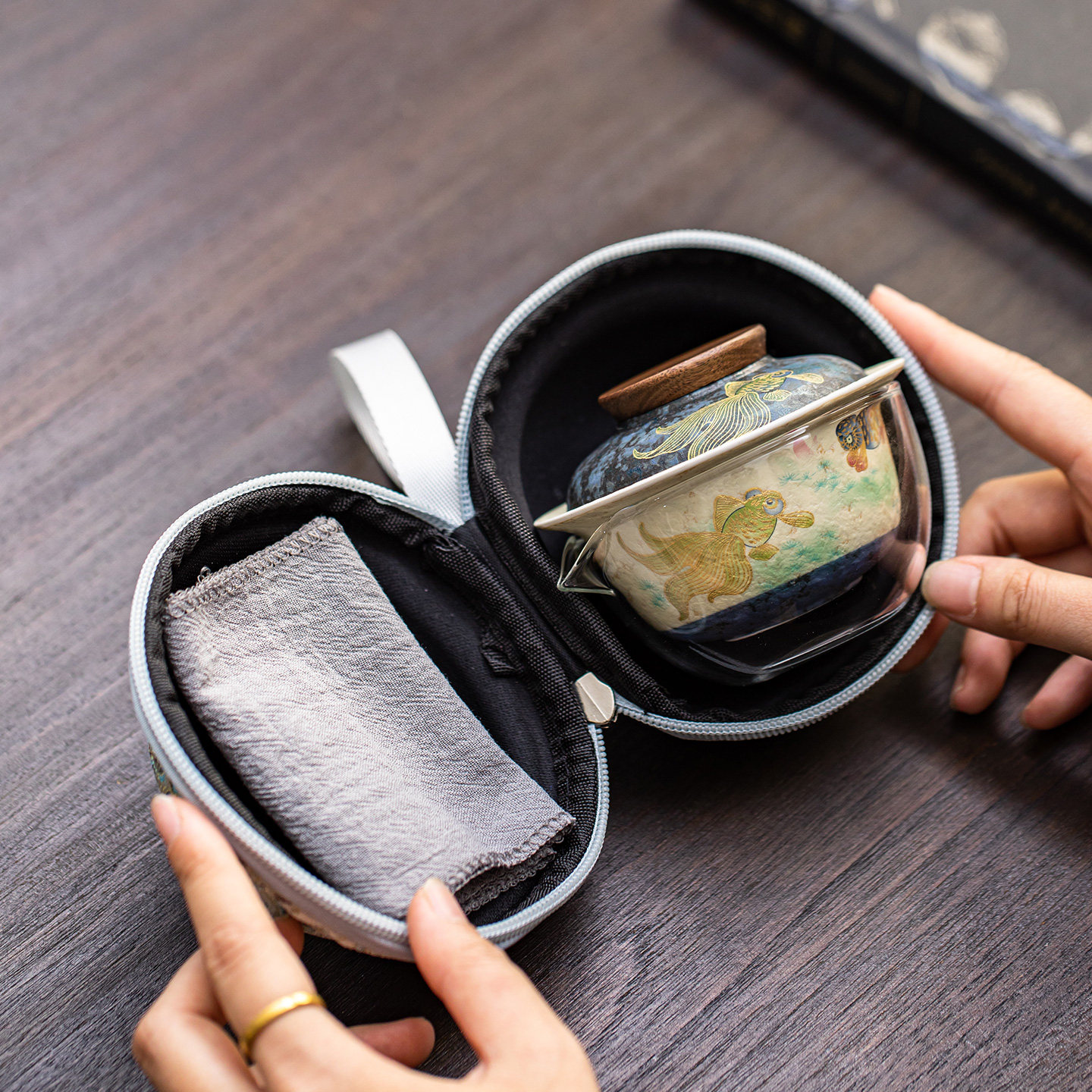 火石红年年有鱼旅行茶具套装快客杯户外便携式喝茶装备盖碗茶杯