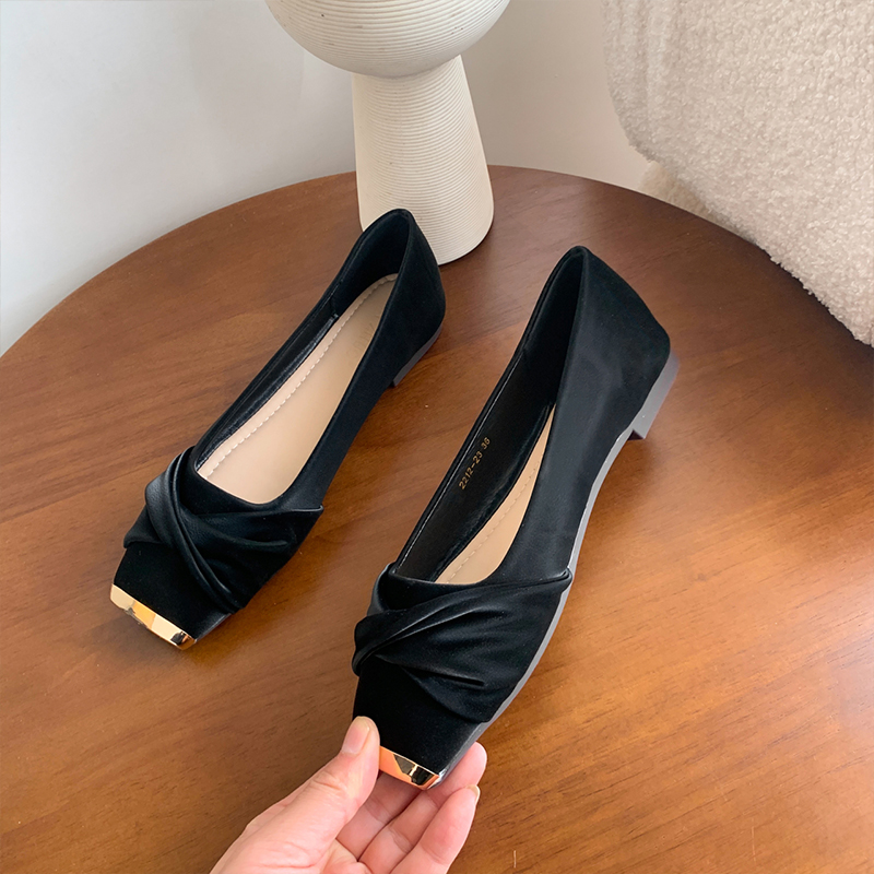 平底气质温柔通勤单鞋女2025新款春季法式方头瓢鞋子配裙子一脚蹬