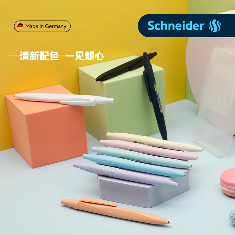 施耐德中性笔reco德国进口学生用黑笔大容量走珠笔换G2笔芯考试文具速干高颜值签字圆珠水笔0.5mm