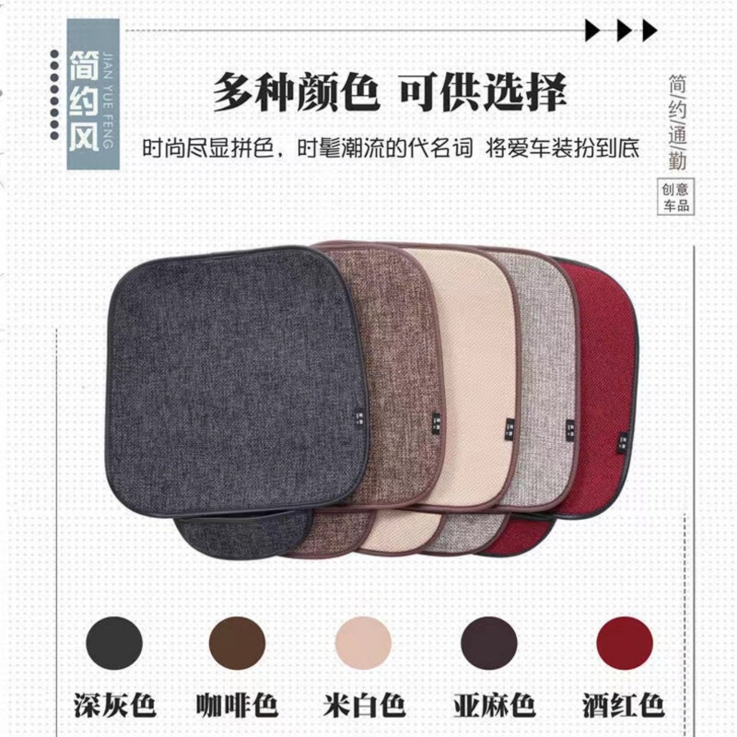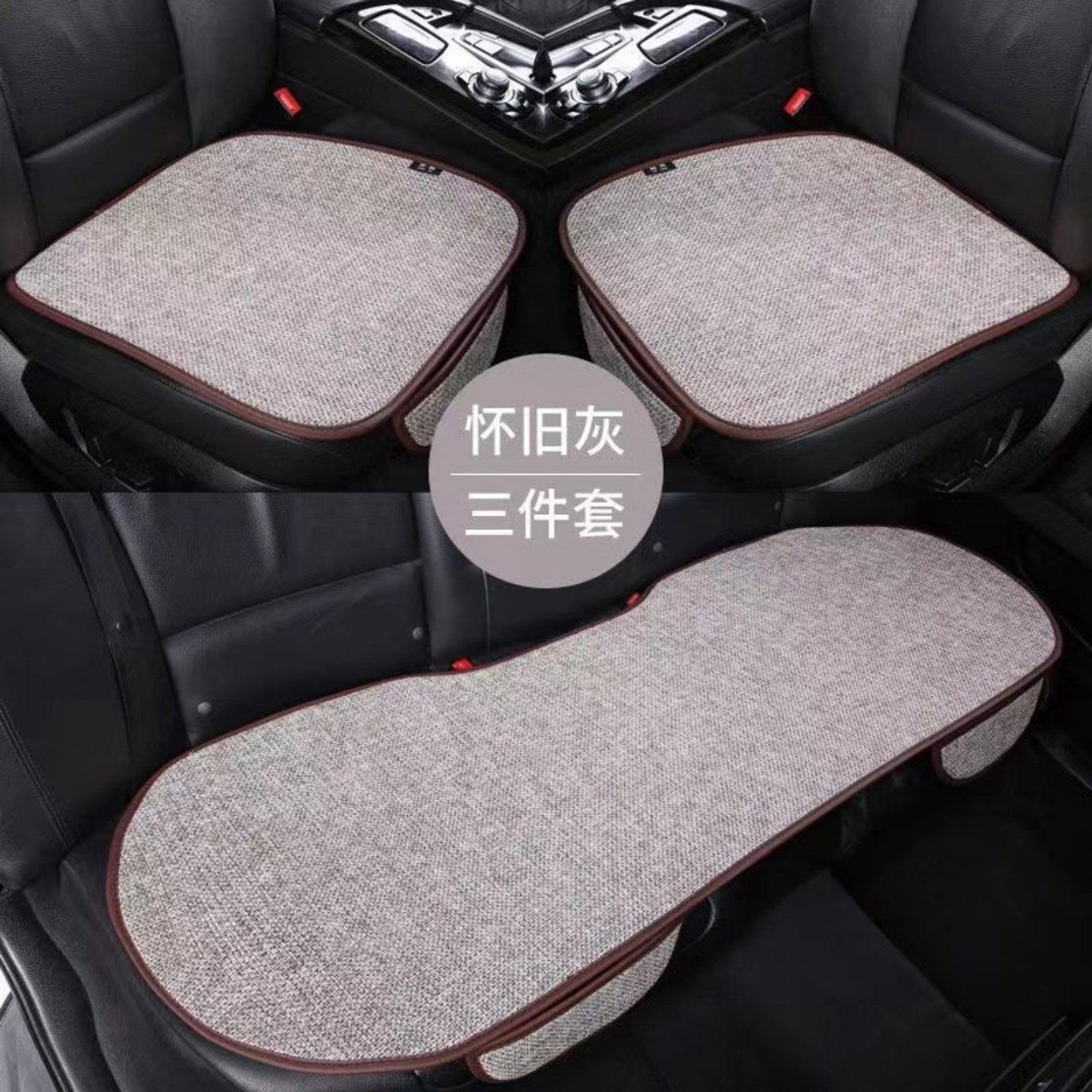 汽车坐垫三件套四季通用单片亚麻无靠背车内座垫后排座套半包座椅