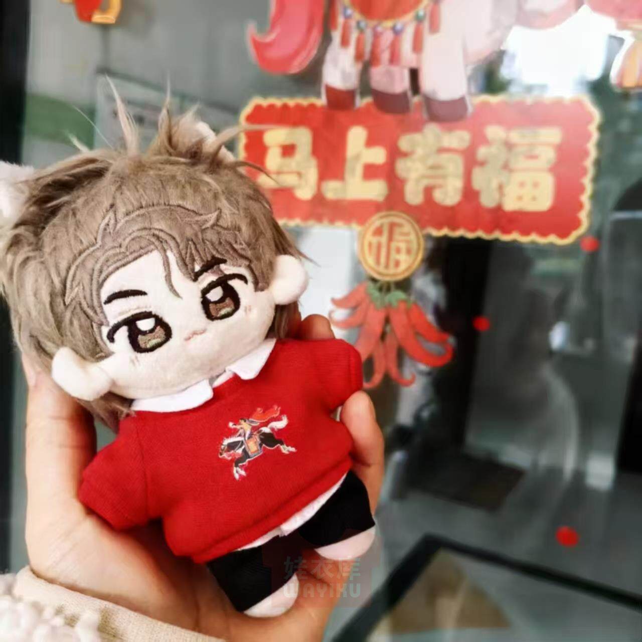 现货海棠兮马年拜年红卫衣10/20cm娃衣新年马上有福棉花娃娃挂件