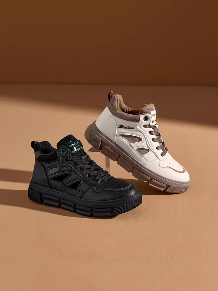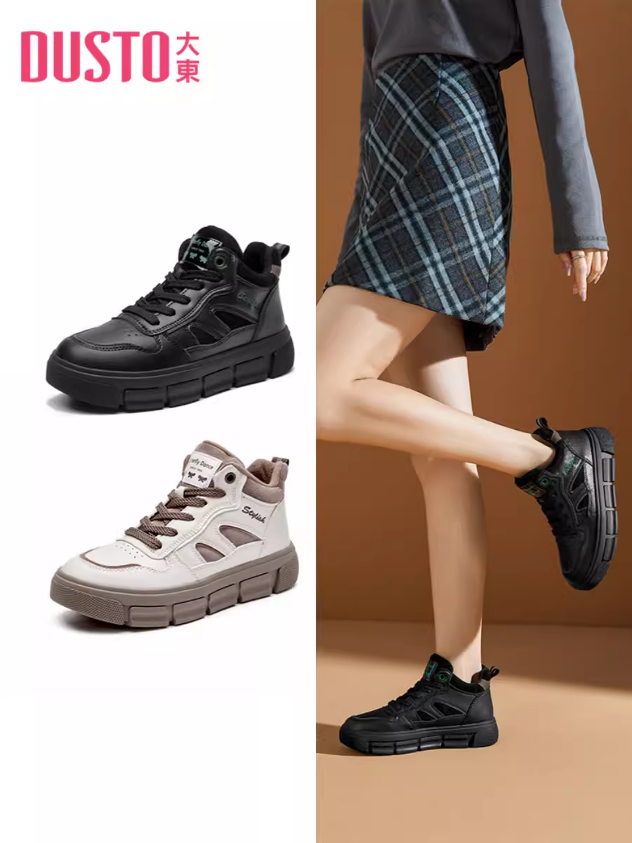 大东时尚板鞋23冬季新款休闲风中跟平底运动鞋圆头女鞋23D1305