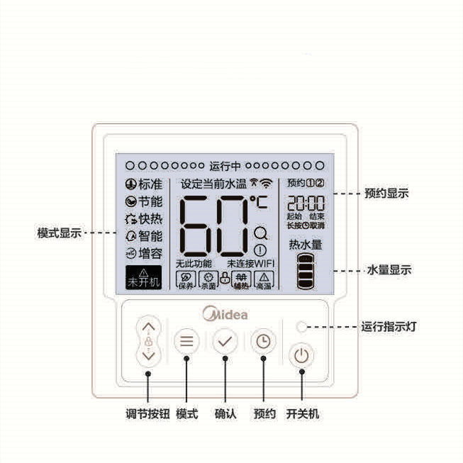 原装美的空气能KJRH-86A/T 86B/GS-B热水器控制面板热水机线控器