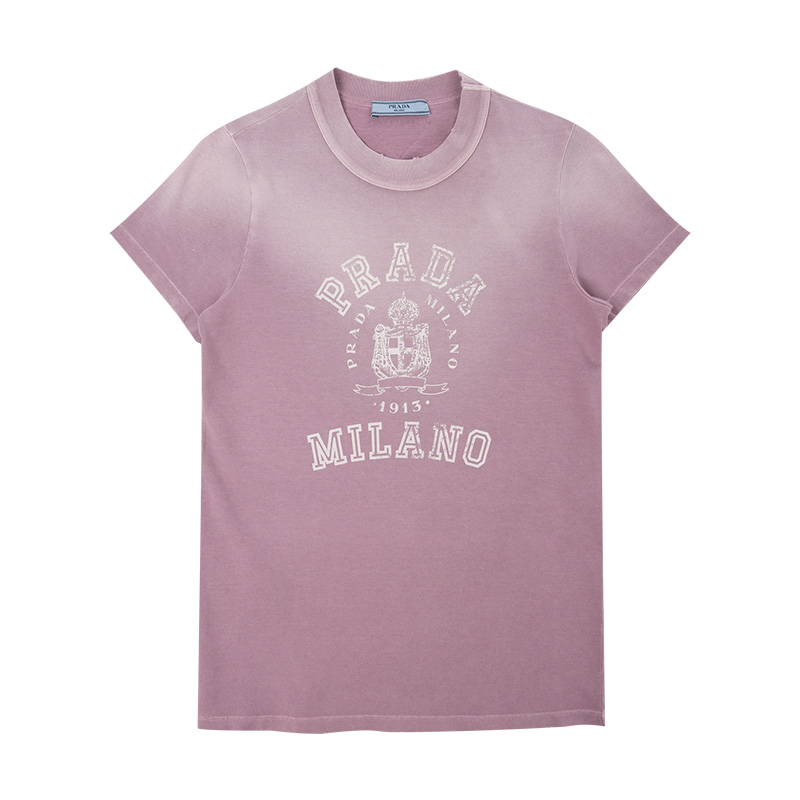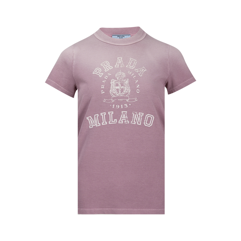 普拉达女士平纹针织全棉短袖T恤