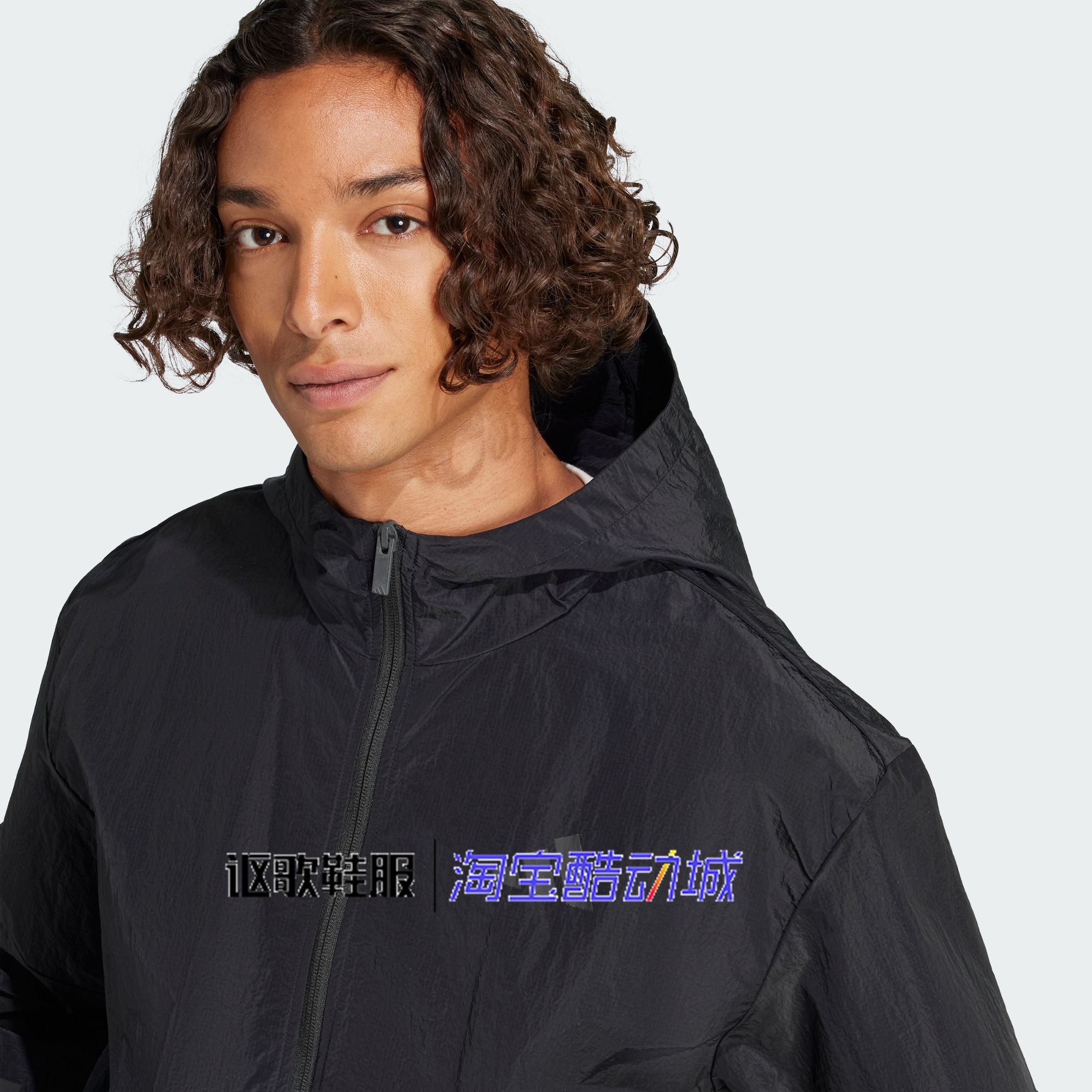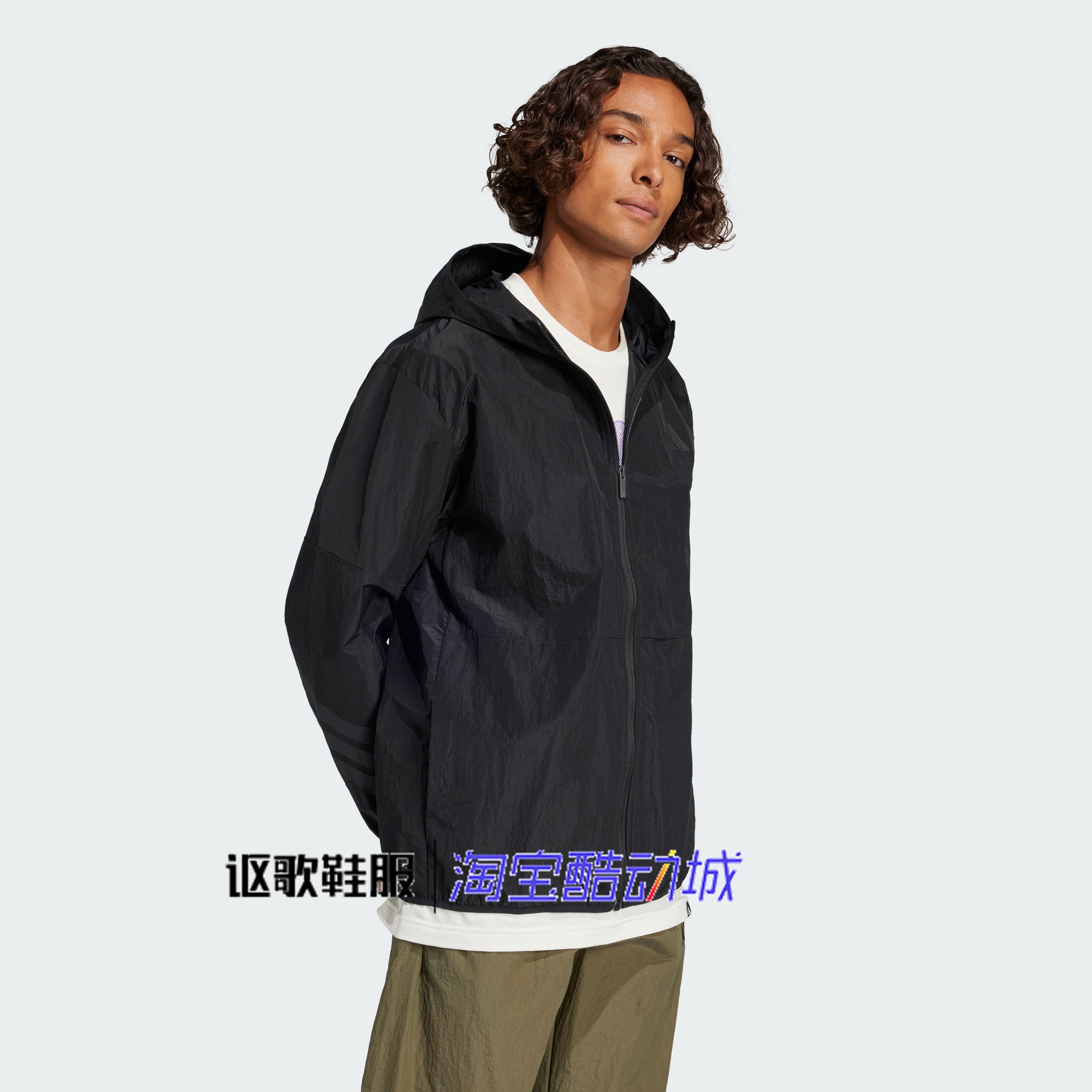 阿迪达斯男子新款户外防晒防风梭织速干连帽运动夹克外套JD4942