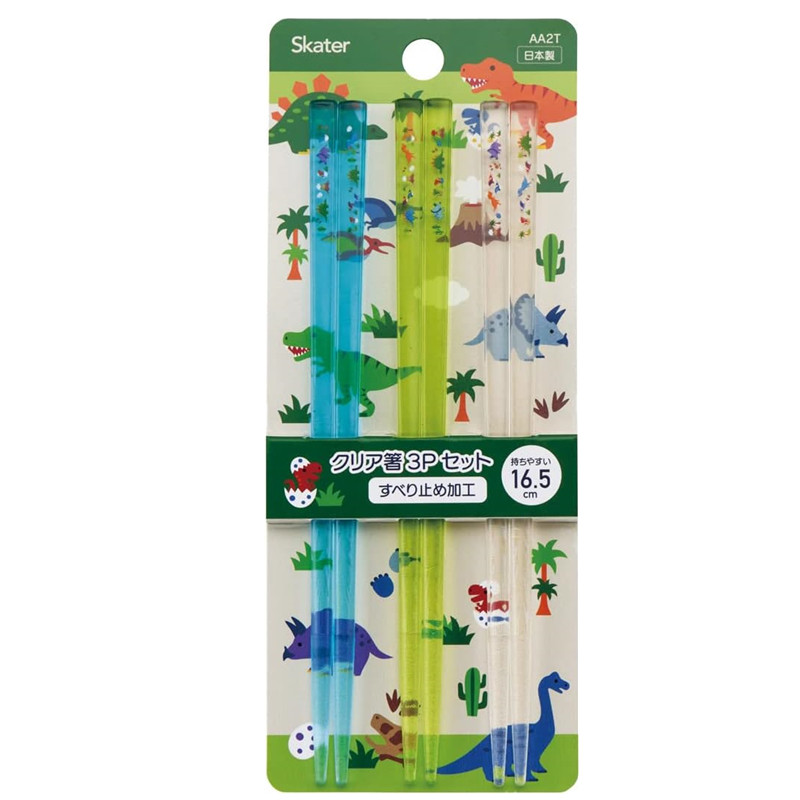 日本skater宝宝儿童卡通恐龙幼儿园透明筷子防滑餐具水晶筷16.5cm