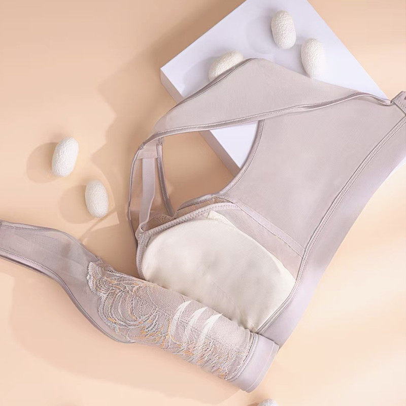 茜丝柔无钢圈文胸蚕丝乳胶聚拢上托内衣侧收副乳宽肩带内衣23808