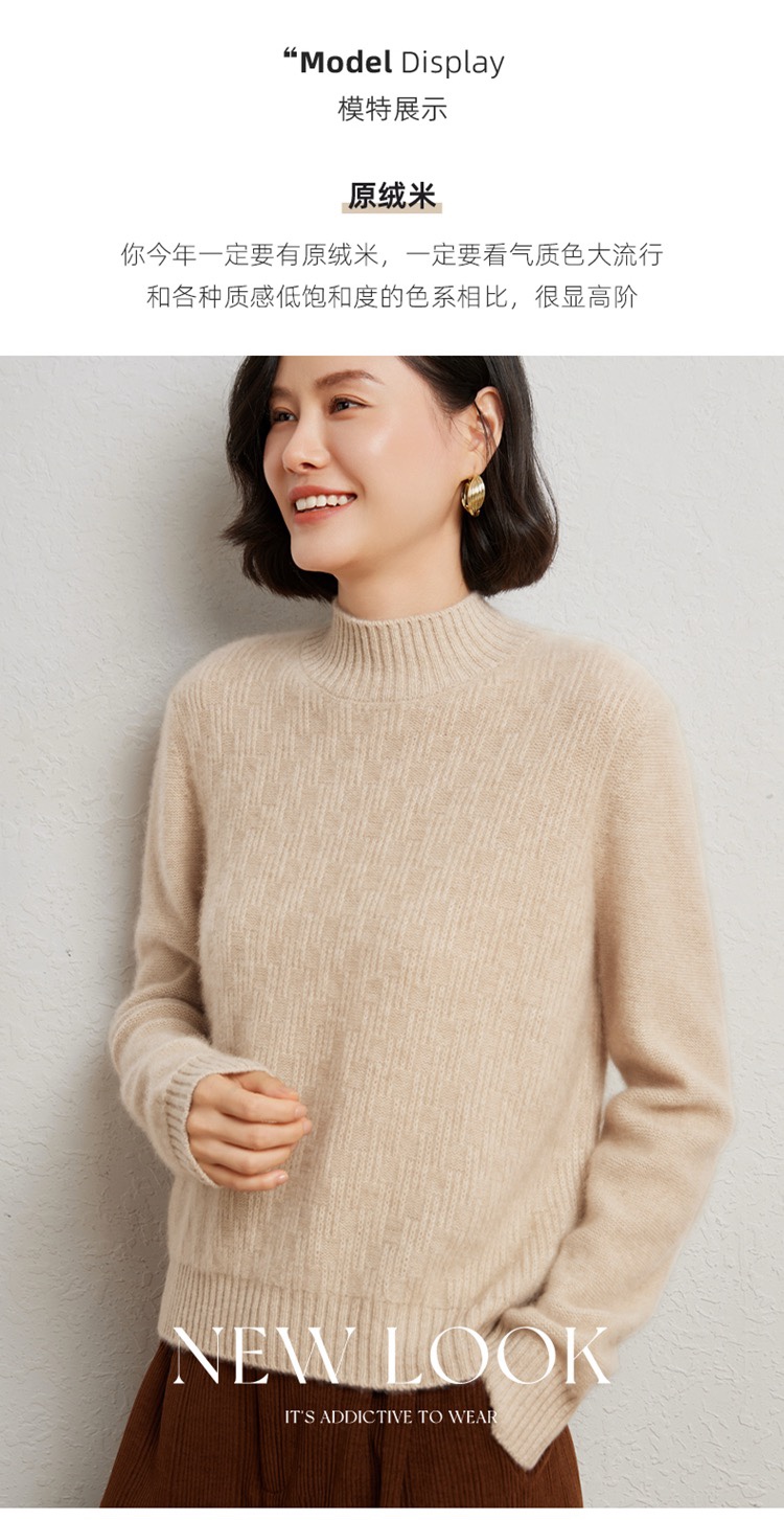 羊绒衫长袖半高领针织衫打底衫山羊绒高档保暖上衣纯色毛衣内搭