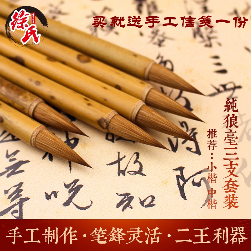 包邮北尾纯狼毫毛笔套装中楷抄经小楷 二王行书草书手札 行楷书法
