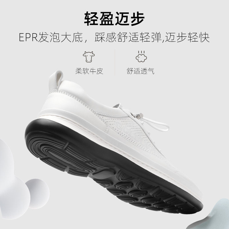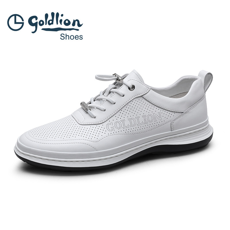 金利来男鞋官方正品夏季新款透气镂空小白鞋真皮运动鞋男士休闲鞋
