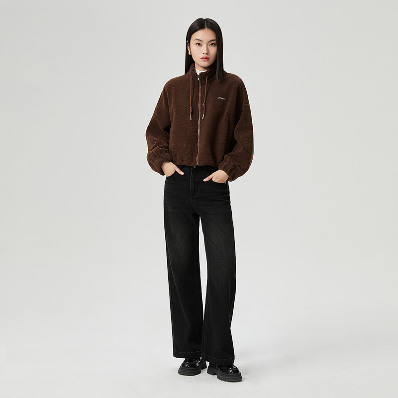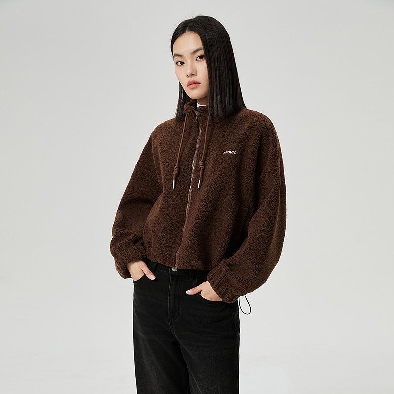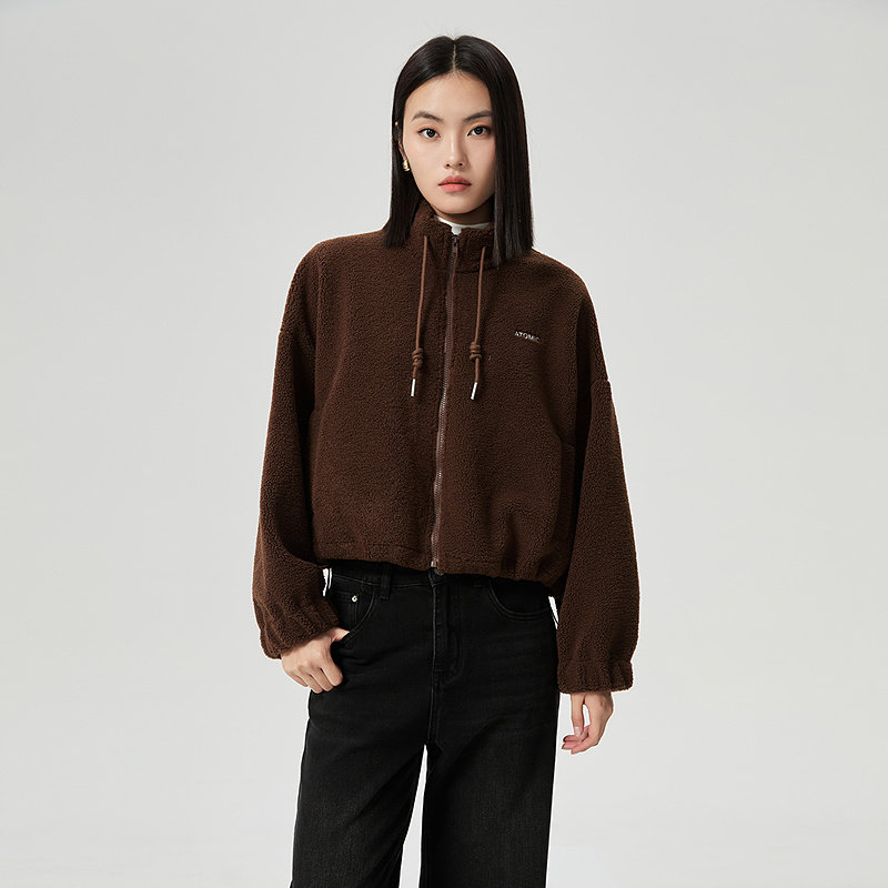普普风商场同款时尚休闲舒适立领拉链保暖外套软糯厚实羊羔毛外套
