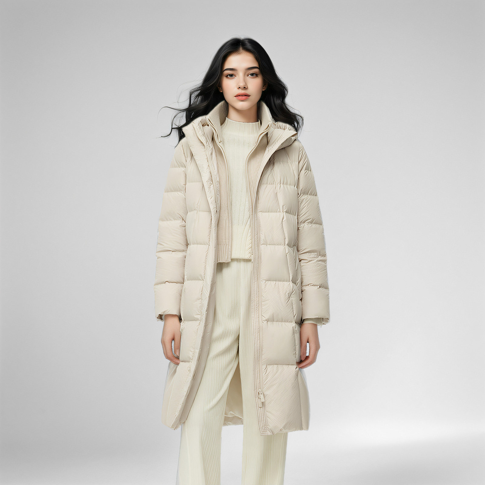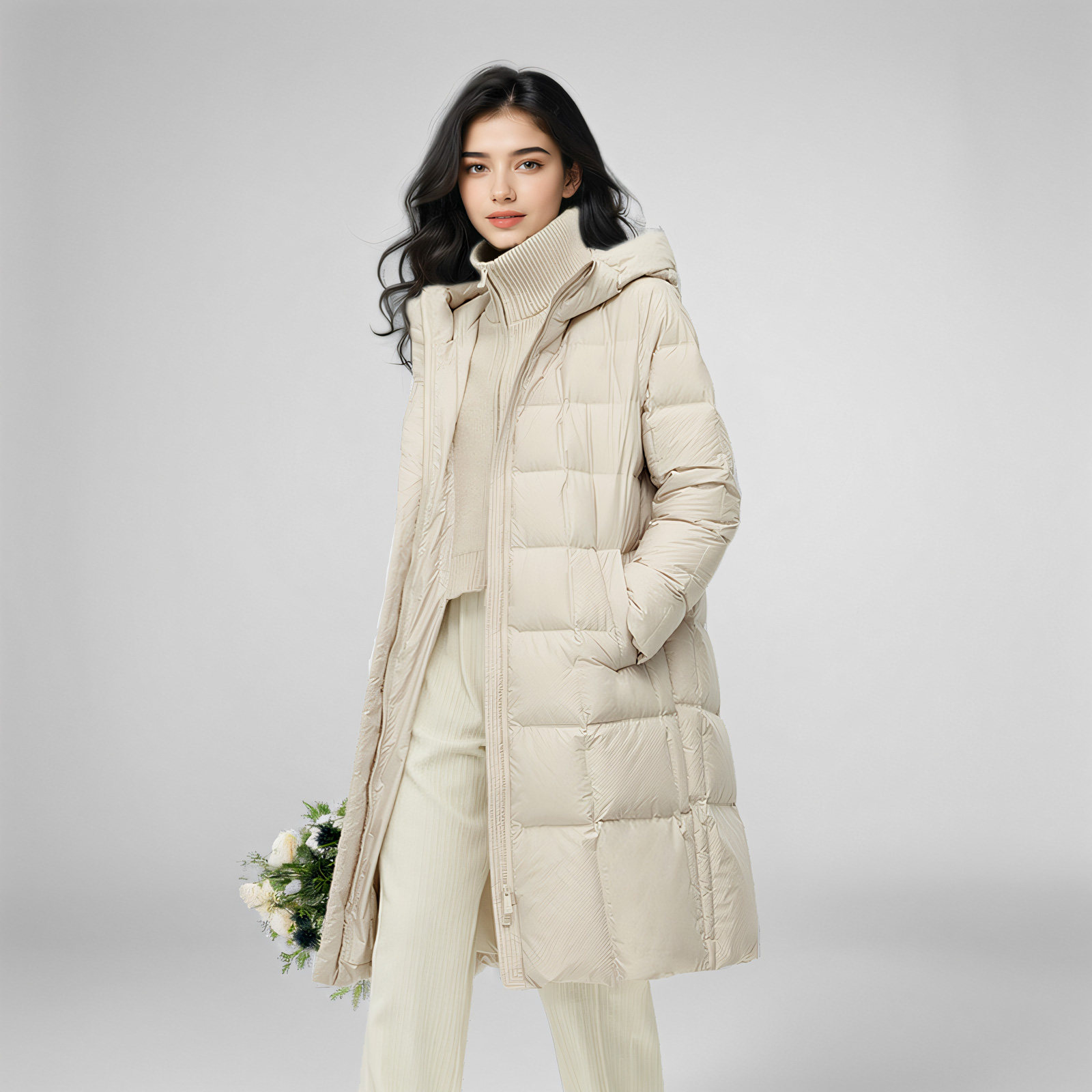 歌莉娅轻薄长款羽绒服鹅绒假两件