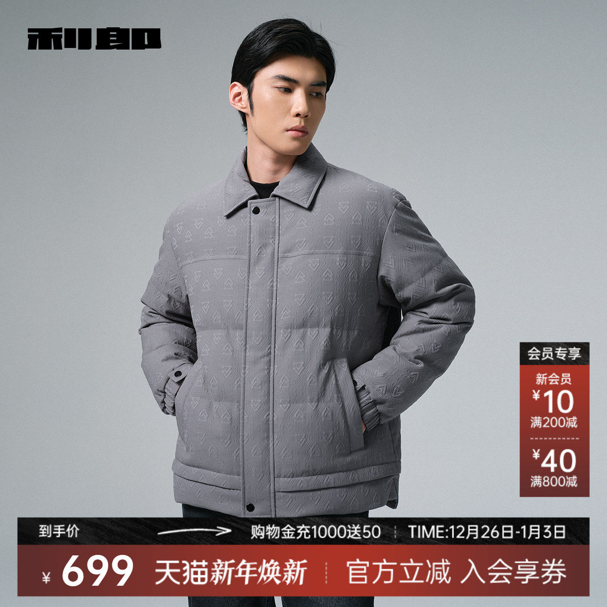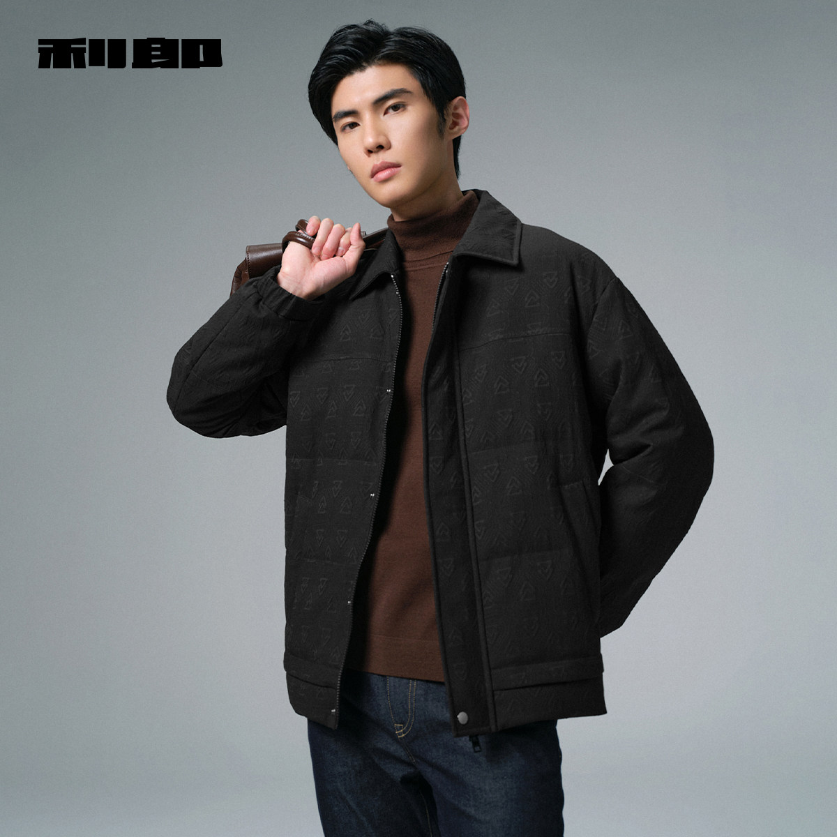 利郎官方 肌理提花羽绒服短款男士2025冬季休闲男装翻领轻薄外套