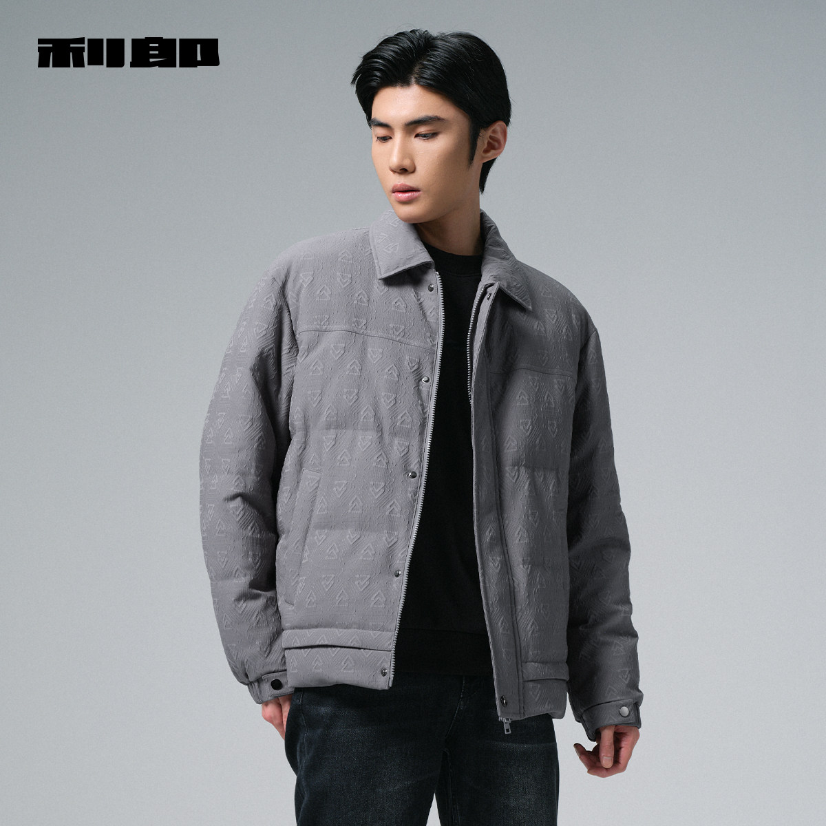 利郎官方肌理提花翻领轻薄羽绒服