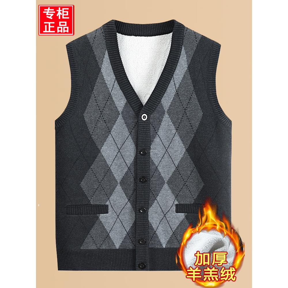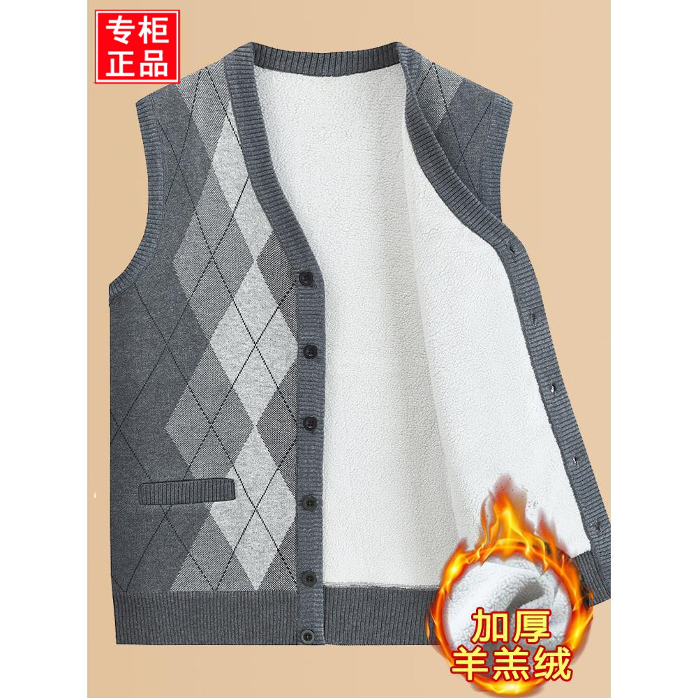 冬季加绒加厚保暖内衣羊羔绒针织毛衣马甲中老年男背心爸爸爷爷装