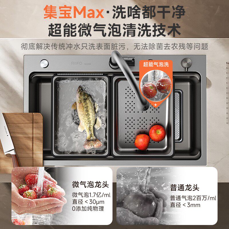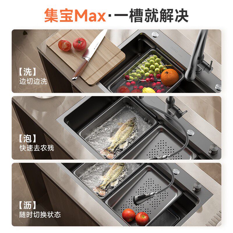 日丰卫浴净雨厨房水槽大单槽不锈钢洗菜盆瀑布水槽洗碗槽池台下盆
