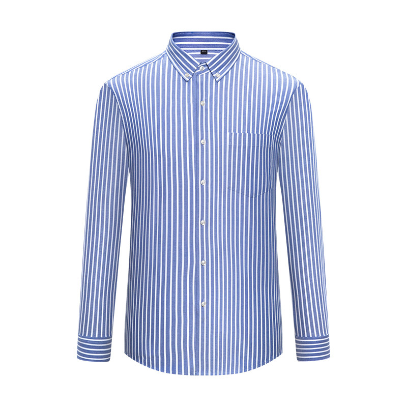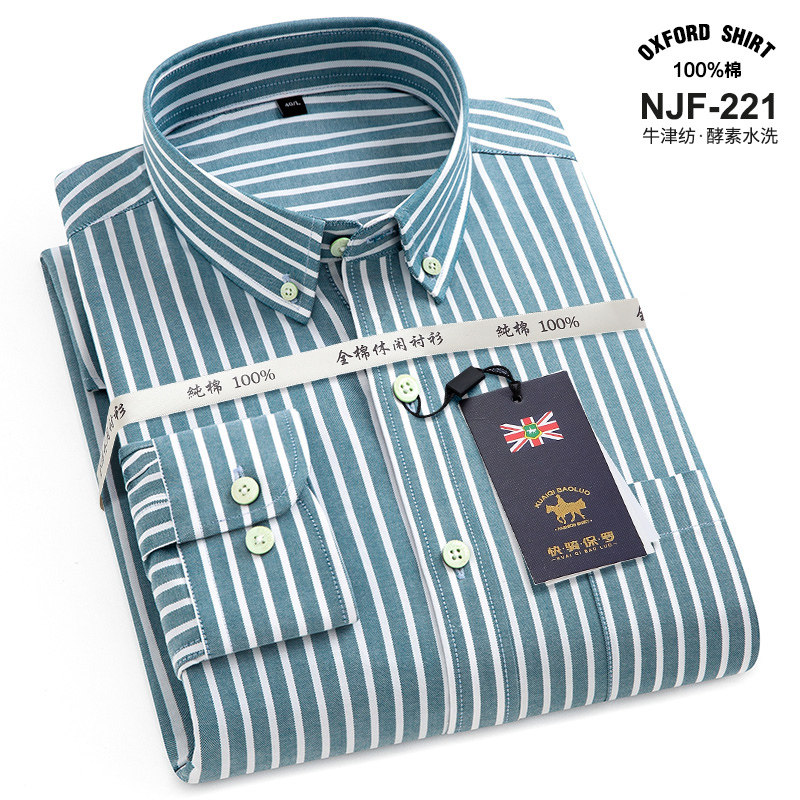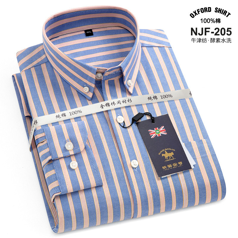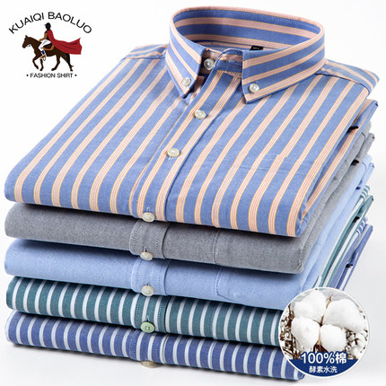 保罗100%纯棉男士牛津纺长袖衬衫中青年休闲全棉条纹大码衬衣男装