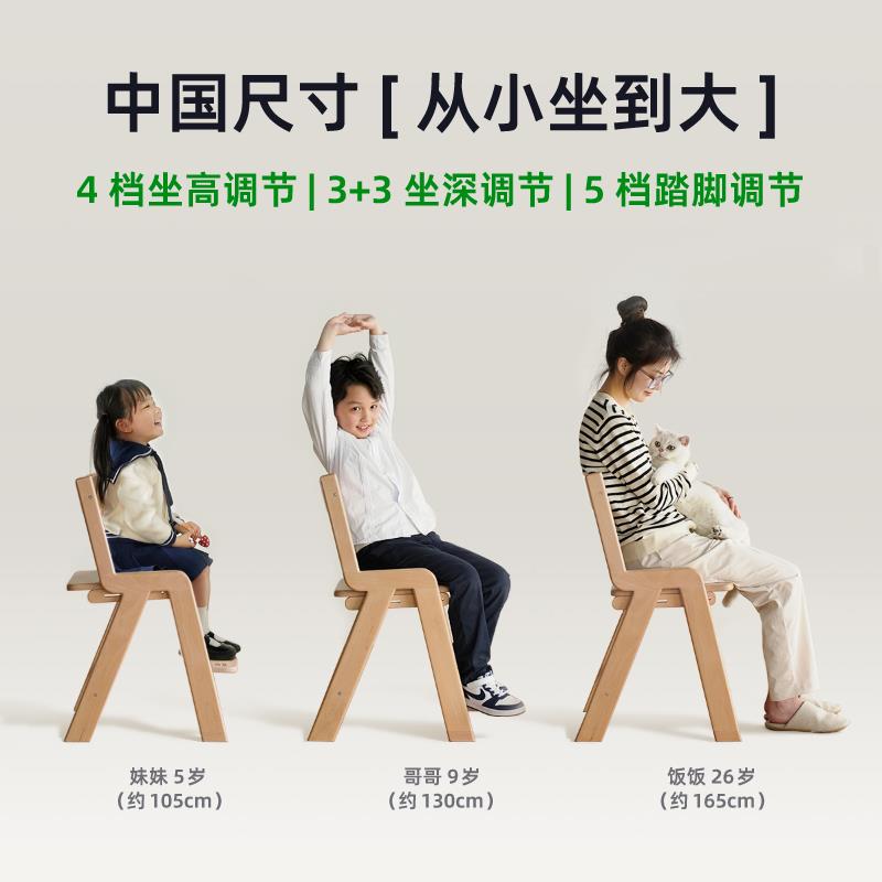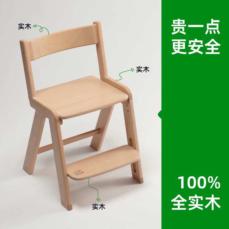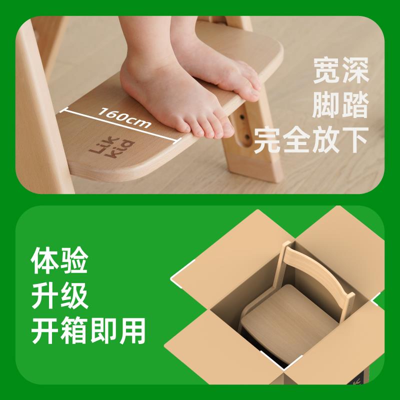 LIKKID儿童实木学习椅可升降调节高度实木座椅宝宝餐椅办公椅子