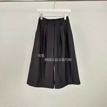 现货 韩国正品女装代购2025秋冬新款高腰褶皱条纹阔腿七分休闲裤