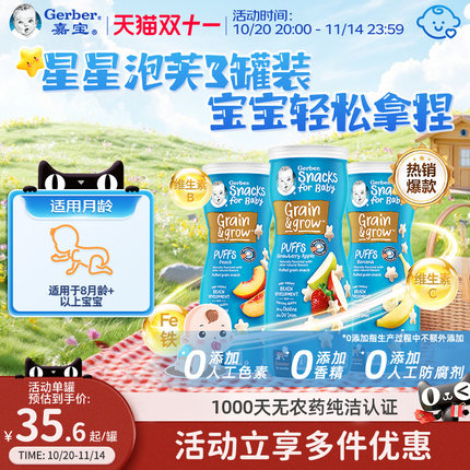 嘉宝Gerber星星泡芙儿童婴儿泡芙宝宝小零食3罐装入口易溶