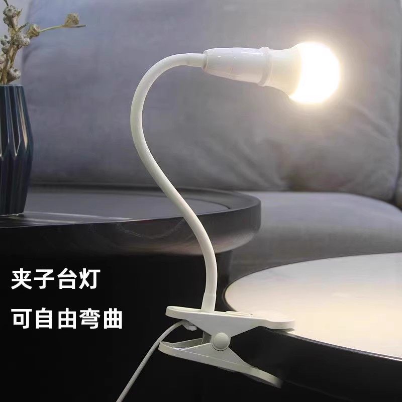 带线夹子护眼万向灯座学习LED台灯E27螺口插电床头架带开关补光灯