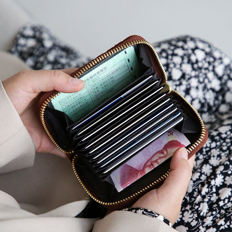 真皮大容量女风琴卡包植鞣牛皮驾驶证银行卡短款防磁多卡位零钱包