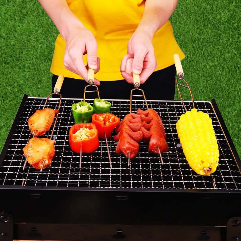 不锈钢烧烤烤肉叉叉子鸡翅叉u型叉烤针工具用品用具木柄签羊腿