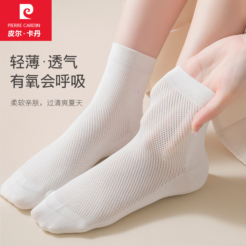 皮尔卡丹桑蚕丝网眼袜子女短袜薄款丝袜透气中筒防臭凉感夏季女袜